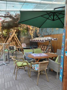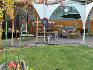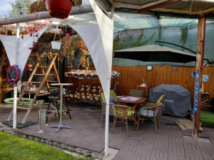 Fedett gépkocsi-beálló az udvaron amely 2 autó számára bőségesen megfelel
