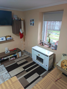 - A homlokzat még színezésre vár, a födém szigetelve és gipszkartonozva lett
