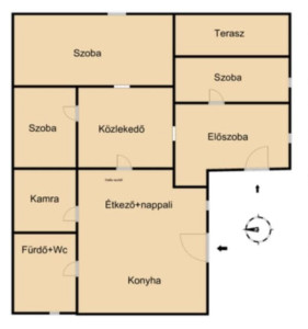 Helyiségek: 3 szoba, gardrób, amerikai konyhás nappali, kamra, fürdőszoba, előszoba, közlekedő