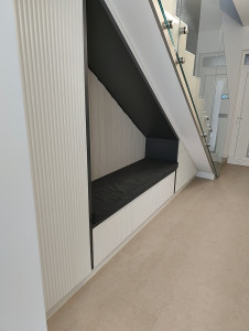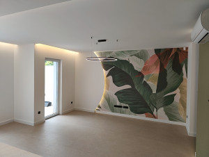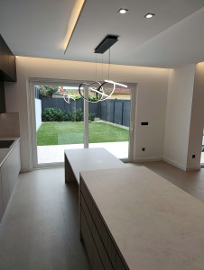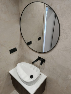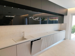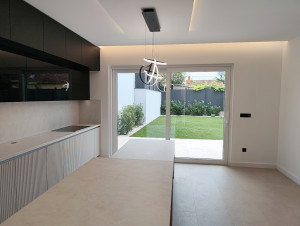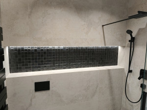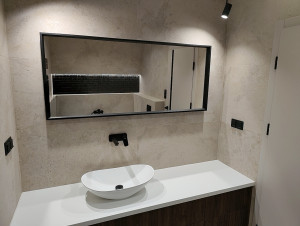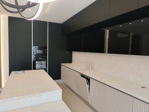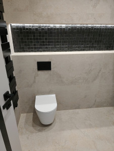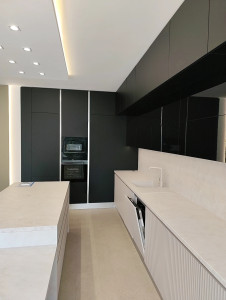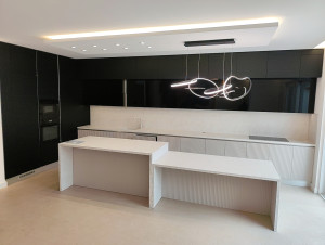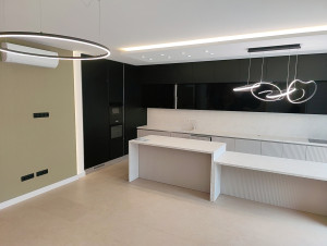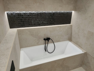 Prémium anyagok és beépített bútorok – AEG gépesített konyha, egyedi fürdőszoba és előszobabútorok, prémium minőségű burkolatok, lámpatestek