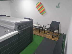 Alagsor: jakuzzis pihenő rész, háztartási helyiség