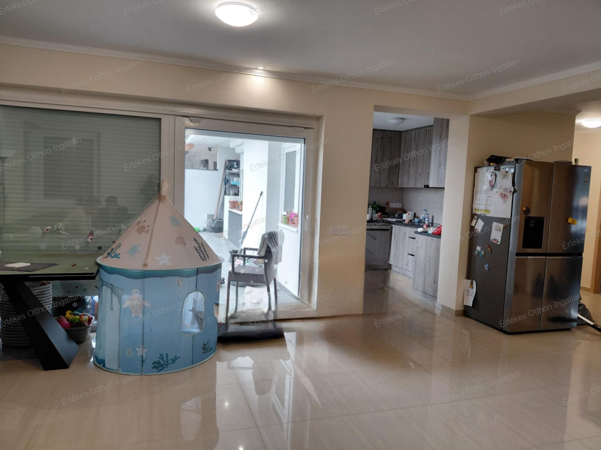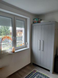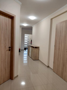 Az otthon kialakítása átgondolt és családbarát: tágas nappali, külön konyha, négy hálószoba, gardrób, külön WC, valamint tágas fürdőszoba káddal és épített zuhanyzóval. A nappaliból közvetlen kijárat nyílik a napos teraszra.